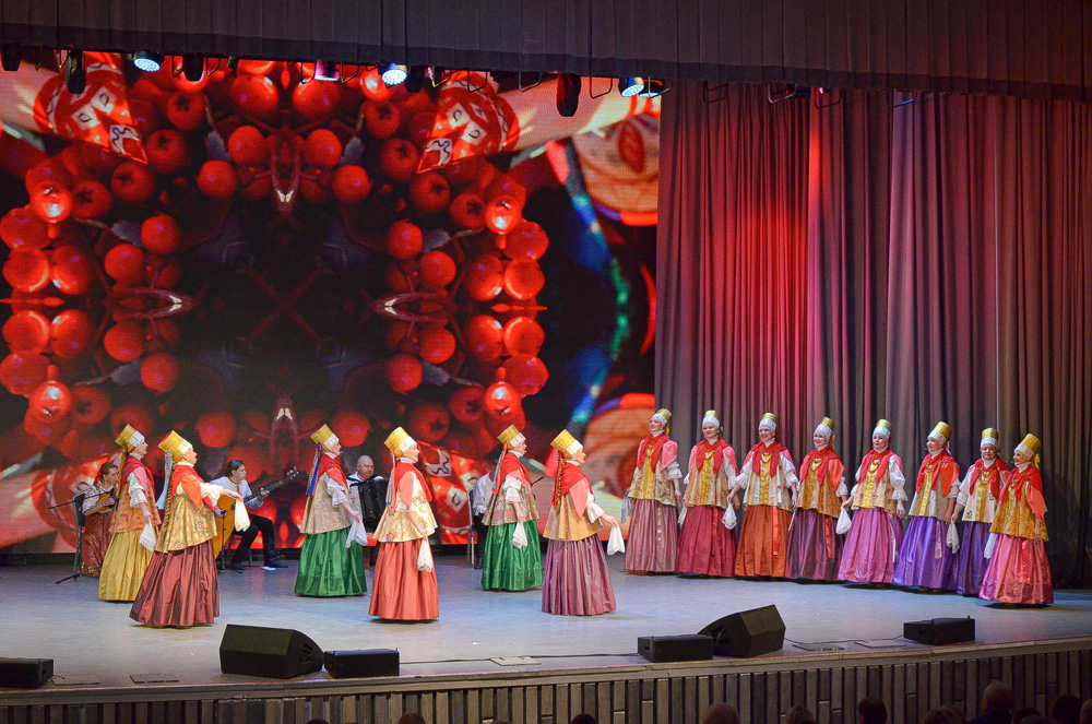 Архангельские артисты представили номера из золотого фонда Северного хорак. Среди них хоровод «Пивна ягода», лирическая песня Пинежского округа «Не бела заря», народные припевки «Тина, тина, тинушка», музыкальная композиция «Емецкие переборы на ложках», русские народные песни «Прялица» и «Красна девица вела кудёрышки».