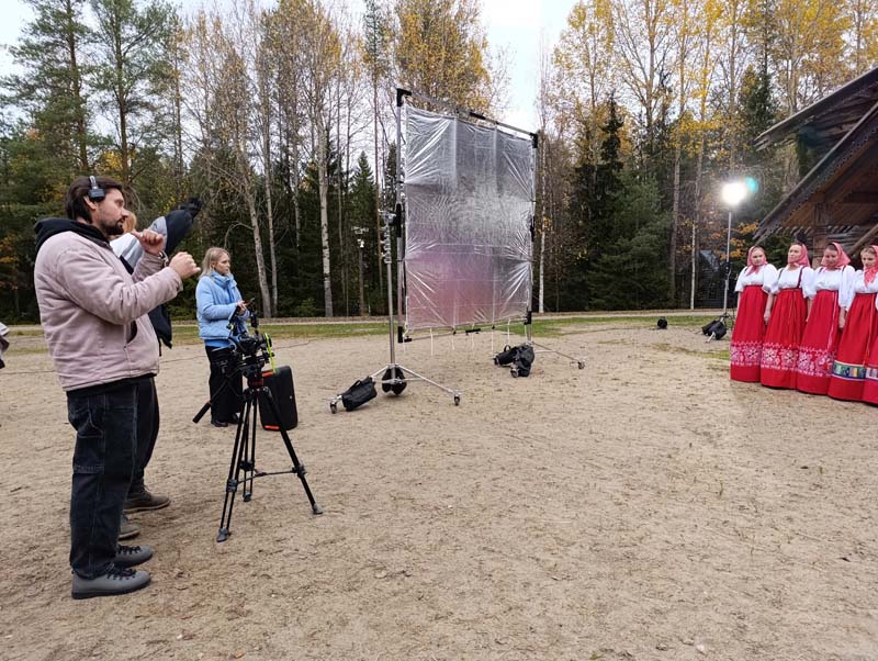 – Практически все съемки прошли на территории Музея-заповедника «Малые Корелы», в необычайных красотах Архангельской области. Там нам удалось решить большинство творческих задач. В музее очень много живописных локаций. Часть съемок прошла на природе: в лесу, на поляне и у озера, – рассказала исполнительный продюсер проекта «Песни Северной Двины» Мария Резапова.