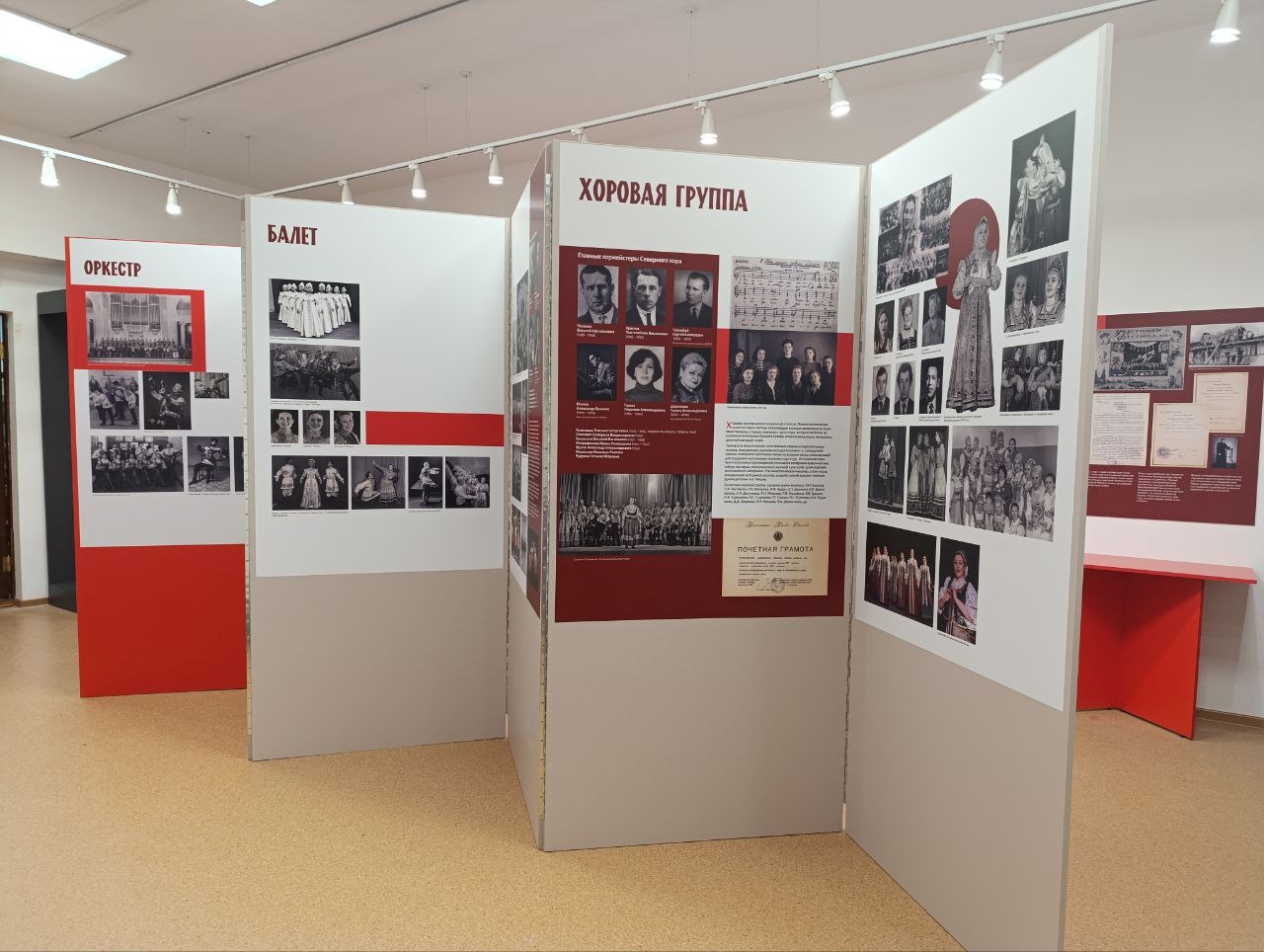 Эмоциональное воздействие экспозиции будет увеличивать аудиовизуальный контент с трансляцией исторических выступлений из архива Северного хора и прослушивание грампластинок с русскими народными песнями.