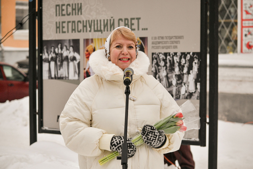 На проспекте Чумбарова-Лучинского открылась планшетная выставка «Песни негаснущий свет…», посвящённая 100-летию Государственного академического Северного русского народного хора.