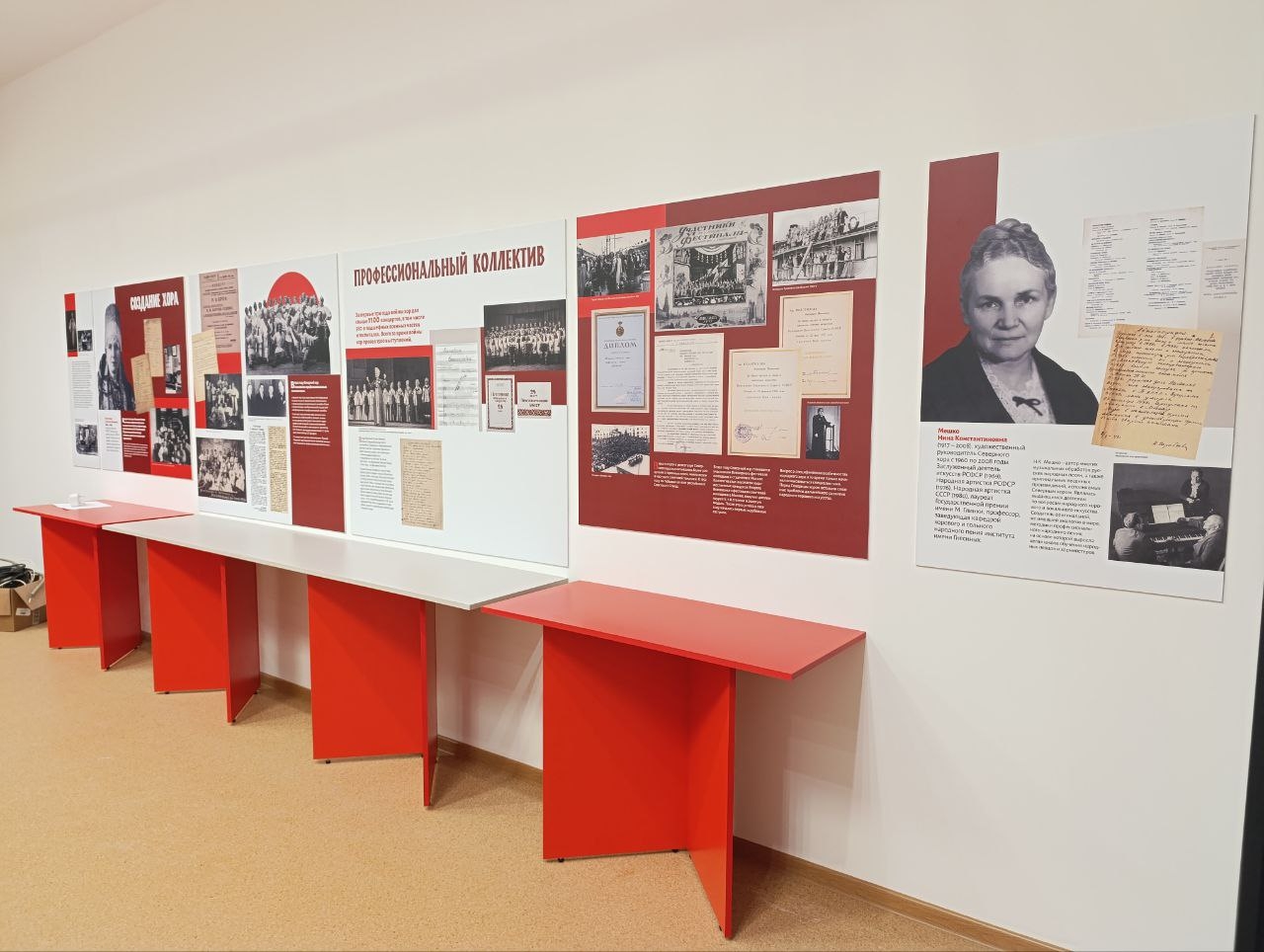 Благодаря помощи Научной библиотеки САФУ и Архангельской научной библиотеки имени Н.А. Добролюбова были оцифрованы альбомы с фотографиями и документами из архива Северного хора. Архангельский краеведческий музей и Великоустюгский музей-заповедник предоставили для экспозиции цифровые копии фотографий и документов из своих фондов. Архив Московской консерватории предоставил копии материалов Н.К. Мешко, которая училась там с 1938 по 1945 годы.