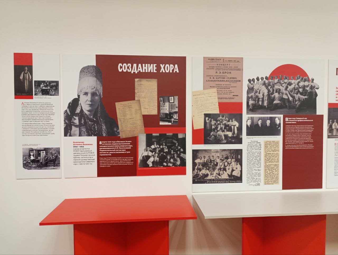 – В экспозиции нам было важно показать богатые истоки нашей северной русской народной культуры, из которой выросло такое уникальное явление как Северный хор. В тематических разделах отражены все основные периоды работы хора, показаны руководители и артисты, внесшие свой вклад в развитие хора и народных песенных традиций Русского Севера. Отдельно уделено внимание репертуару хора, его золотому фонду и современному периоду работы коллектива, – рассказала директор Северного хора Наталья Асадчик.
