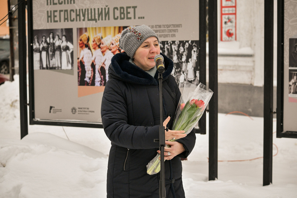 На проспекте Чумбарова-Лучинского открылась планшетная выставка «Песни негаснущий свет…», посвящённая 100-летию Государственного академического Северного русского народного хора.