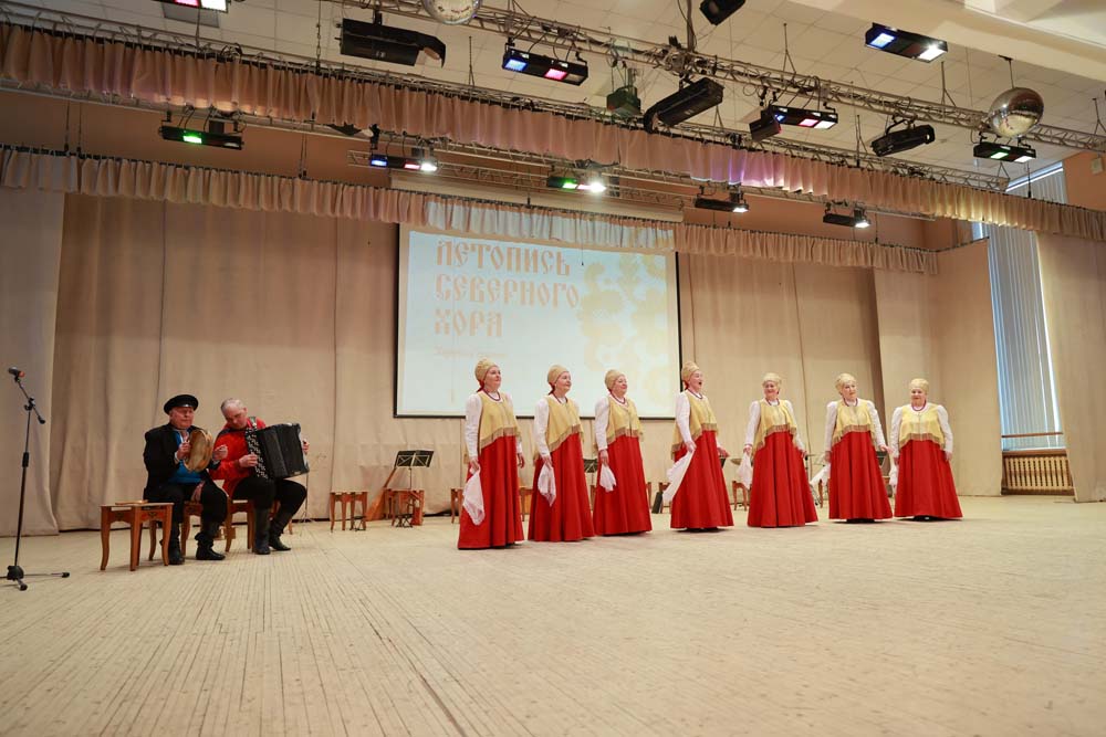На концерте прозвучали песни из золотого фонда Северного хора «Ах, не одна во поле дороженька», «Красна девица вила кудерышки», «Прялица», «Ты луготка луговая», «Тихо стонет сине море» и другие.